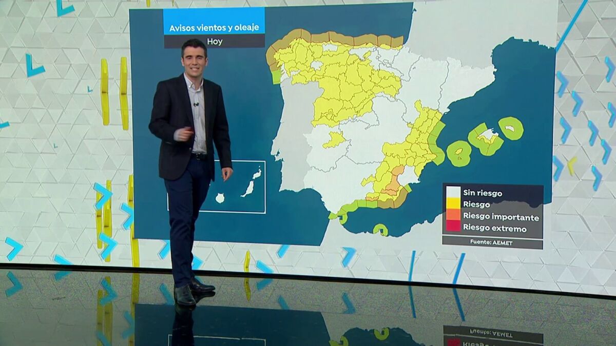 Para hoy se espera viento de 90/100 km/h principalmente en puntos de Asturias, Cantabria y País Vasco. En zonas como Castilla y León, Castilla-La Mancha, Andalucía, Comunidad Valenciana y Baleares las rachas llegarán a los 70/80 km/h. En Galicia y las costas del Cantábrico las olas rozarán los 7 metros de altura.