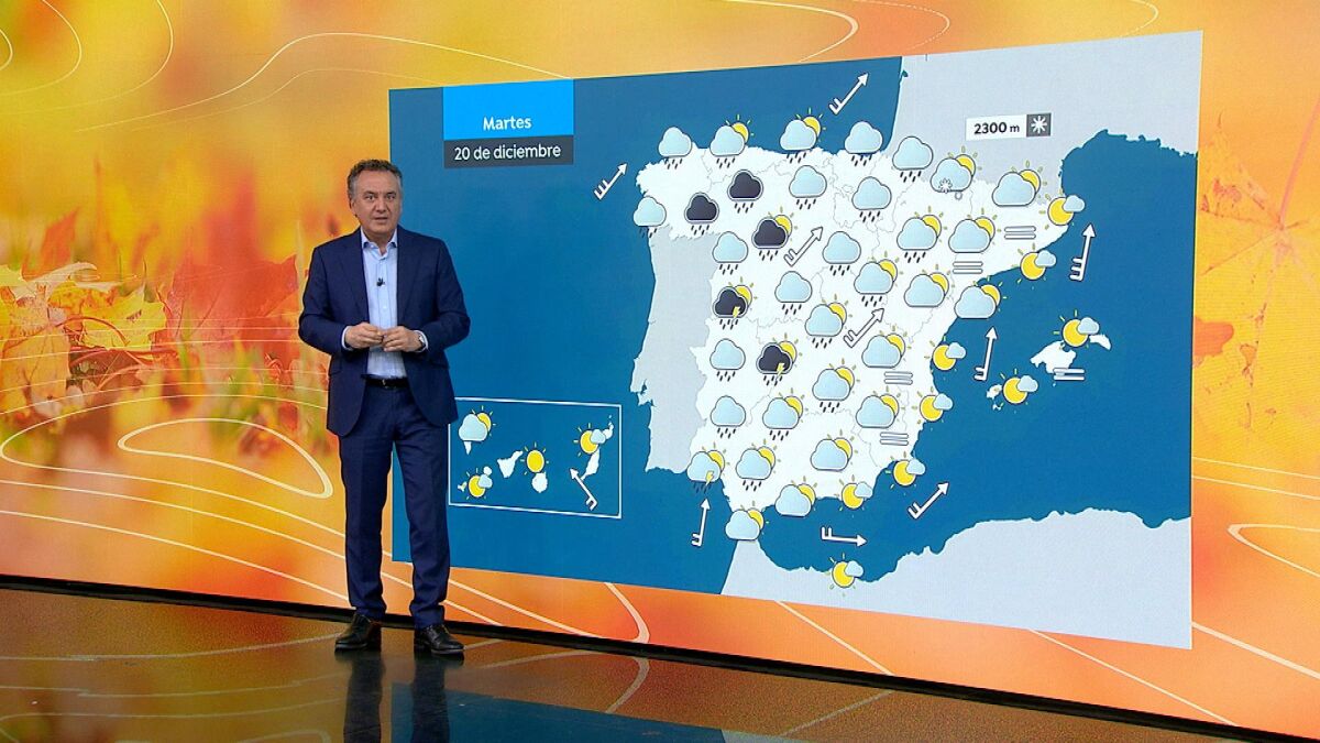Al otoño le quedan tres días, y dará tiempo a que las lluvias lleguen, se extiendan y se vayan, para dar paso el jueves a un inverno muy descafeinado. Comenzamos la semana con la llegada de un nuevo frente, irá extendiendo las lluvias al oeste de la Península. Pueden ser fuertes en el sur de A Coruña, en Pontevedra, Ourense y Zamora. Según vaya transcurriendo la mañana también lloverá en el oeste de Cáceres, por la tarde habrán llegado a Badajoz y al norte de Huelva. Los cielos despejados deberían predominar en Alicante, la Región de Murcia, el este de Andalucía y Baleares. En el resto de la Península, aunque se disipen las nieblas, se mantendrán los cielos nublados. Al Archipiélago Canario llega un nuevo invitado junto con el sol, la calima sobre todo en las islas más orientales.