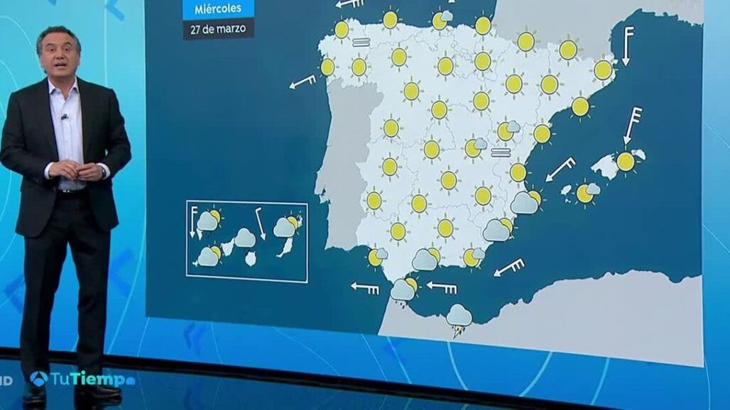 El cielo estará este miércoles poco nuboso en toda la Península y Baleares, mientras en Canarias habrá nubosidad y chubascos, que serán más fuertes en las islas más montañosas. Las temperaturas diurnas irán en descenso en Andalucía y la Meseta Sur, en ascenso en el noroeste peninsular y los Pirineos y sin cambios en el resto. Las nocturnas bajan en la mitad sur peninsular y cambian poco en el resto.