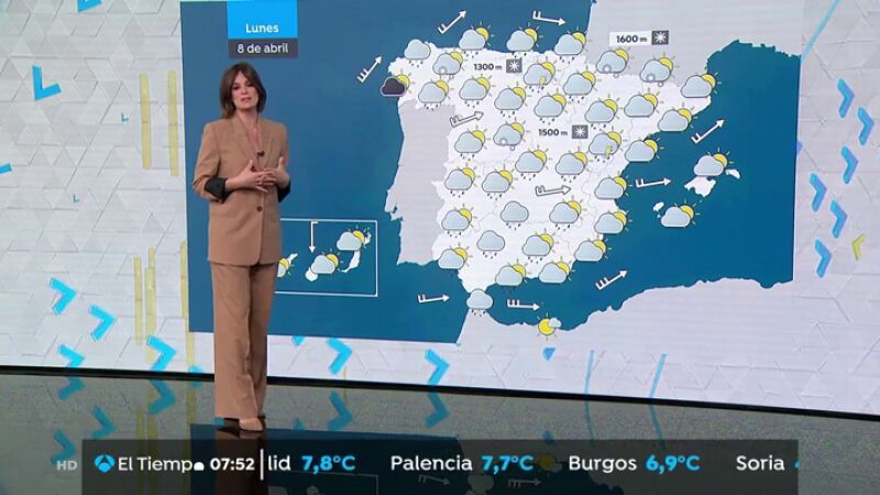 La semana comienza con lluvias en el norte, combinadas con fuertes vientos en Galicia. En el norte, los cielos estarán nubosos o cubiertos con lluvias, chubascos y ocasionales tormentas y granizo. Tras el paso del frente, las precipitaciones tenderán a remitir al final, aunque podrán ser localmente persistentes en el oeste de Galicia. Las temperaturas irán en ascenso en la mayor parte de la Península y Baleares, más acusado de las diurnas en el tercio sur peninsular.