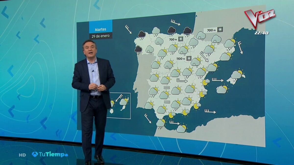 Para este martes se espera viento muy fuerte en el Cantábrico, zonas de montaña, el bajo Ebro, Ampurdán y Baleares. Irá acompañado de precipitaciones en la mitad norte peninsular. Las lluvias y chubascos serán persistentes en Galicia, el Cantábrico y el Pirineo occidental, y se extenderán por la tarde también a puntos de Baleares.