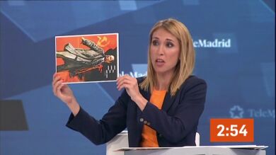La edil de Ciudadanos sacó durante el debate una imagen de Lenin "que tiene un concejal de Carmena en su despacho". El hecho de que sacara el cartel al revés, ha provocado que sea en unas de las más comentadas en las redes sociales.