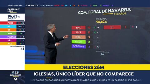 El PSN pasa a ser segunda fuerza en Navarra con 11 escaños, cuatro más que la pasada legislatura, y Geroa Bai pasa a tercera fuerza, con un total de nueve escaños, igual que hasta ahora.