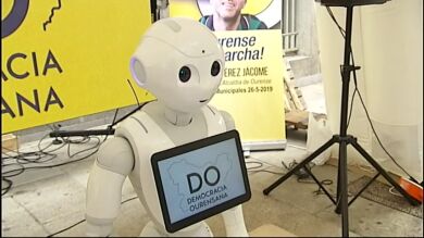 La candidatura de Gonzalo Pérez Jácome ha incorporado este 23 de mayo a sus filas a un humanoide asiático, de manera que Democracia Ourensana recurre así a la 'inteligencia artificial' para pedir el voto "a pie de calle" para las elecciones municipales que se celebran el próximo 26 de mayo.