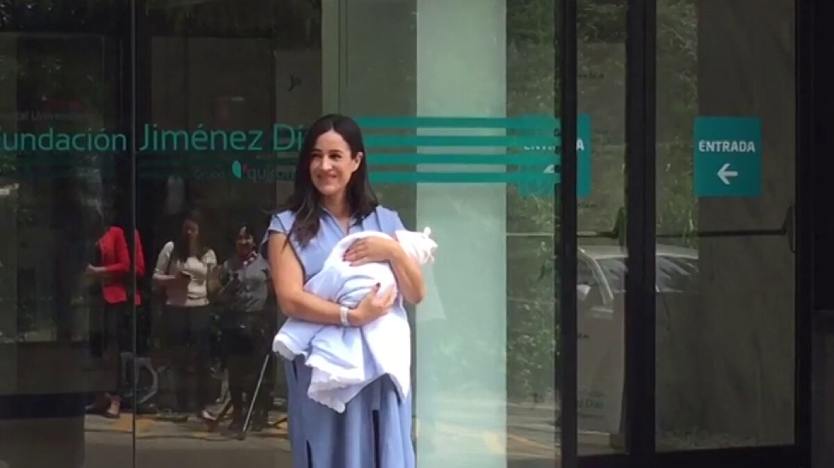 Begoña Villacís abandona el hospital tras el parto de su tercera hija.