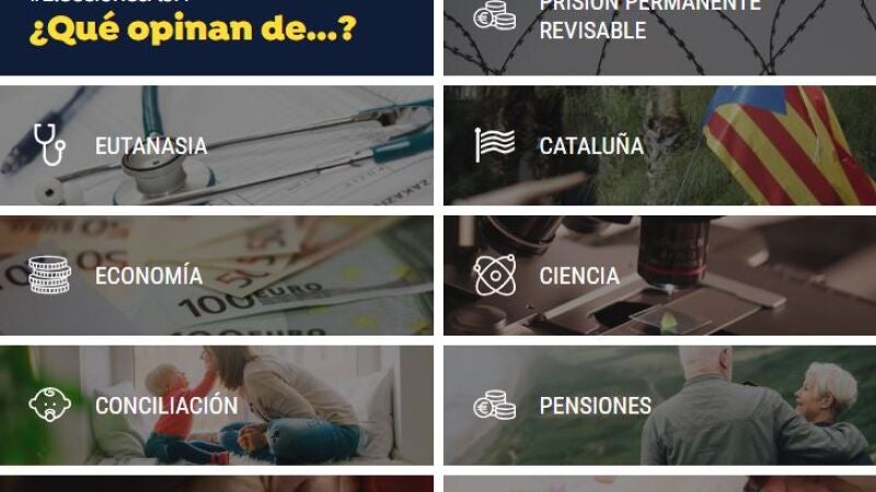 Hemos elegido los principales puntos de todos los programas electorales y comparado cuáles son sus propuestas. Ciencia, economía, pensiones, medidas fiscales...elige el aspecto que más te interese y repasa sus ideas. Recuerda que también puedes hacer NUESTRO TEST para averiguar con qué partido tienes más coincidencias.