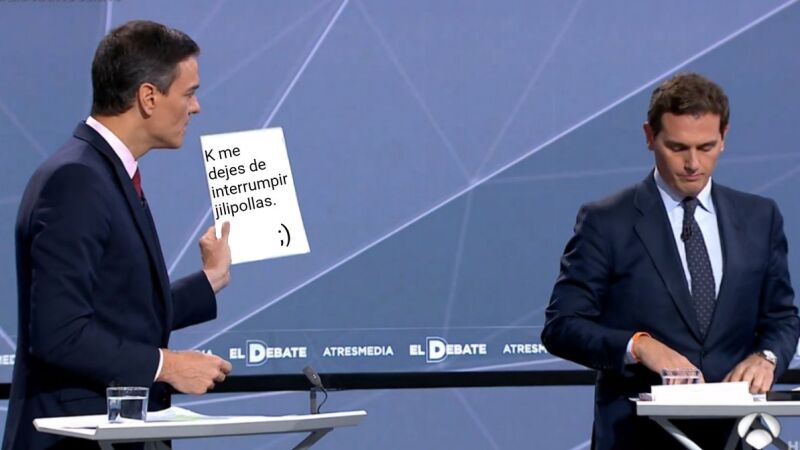 El segundo debate electoral ha estado plagado de gestos, detalles y comentarios de los candidatos que han alimentado la charla en las redes sociales, como el intercambio de libros entre Pedro Sánchez y Albert Rivera, el rollo de papel de los casos de corrupción del PSOE andaluz o el gráfico sin ejes de Pablo Casado.