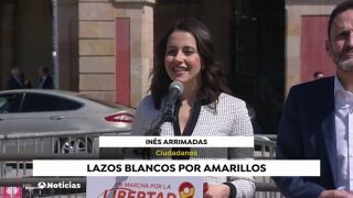 La líder de Cs en Cataluña, Inés Arrimadas, ha criticado este jueves la nueva pancarta que ha colocado el Govern en la fachada de la Generalitat y que sustituye la del lazo amarillo, porque la considera "un insulto a la inteligencia".
