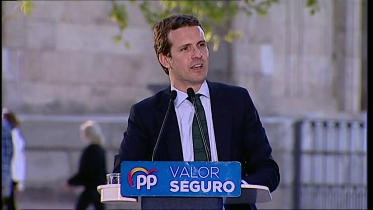 Pablo Casado, en Madrid: "Estoy con el líder político al que amenacen por dar un mitin en España, aunque sea mi adversario"