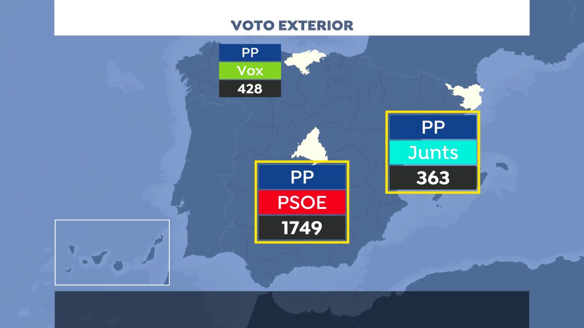 Por último, el PP depende de 363 votos para quitar un escaño a Junts per Cataluña en Girona, donde el PP no tiene actualmente ningún representante y los electores con derecho a voto en el extranjero alcanzan los 23.993.