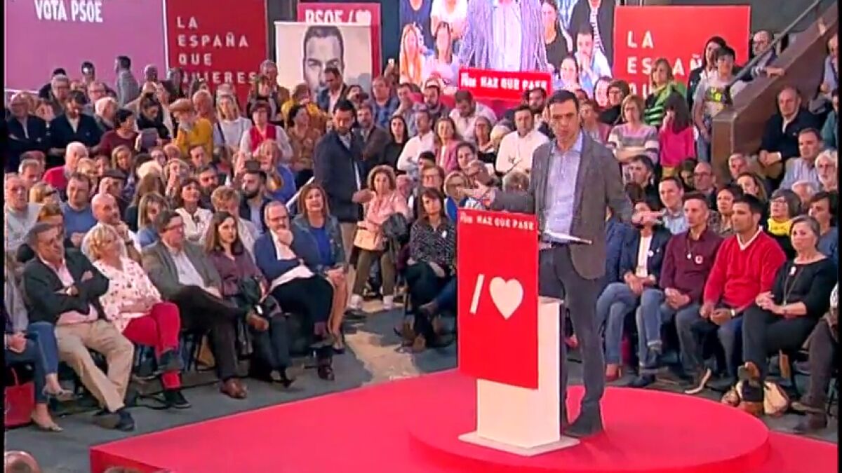 El presidente del Gobierno y candidato del PSOE a la reelección, Pedro Sánchez, ha pedido este martes un "reproche" en las urnas a PP y Ciudadanos por no haber sido "valientes" y no haber rebatido con argumentos las posiciones más extremas de la "ultraderecha" de Vox.