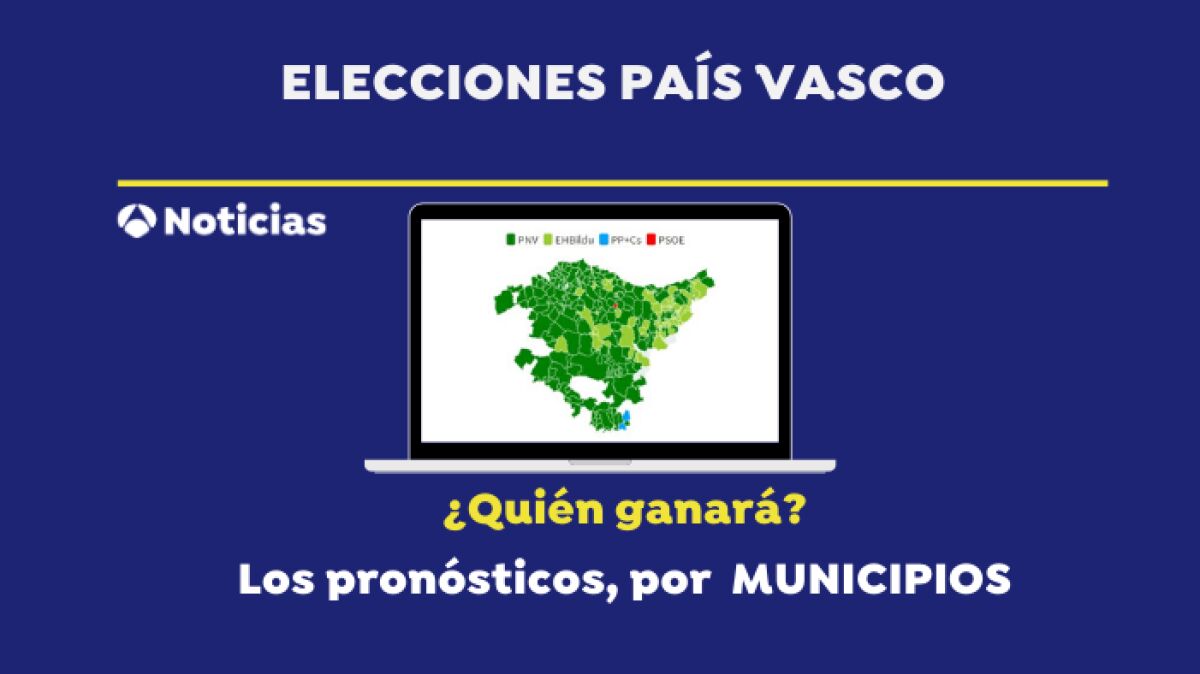 En este mapa podrás comprobar y repasar, pueblo por pueblo, quién será el ganador. La mayoría se los reparten PNV y EH Bildu, aunque llaman la atención dos casos. En Oyón, Álava, resultaría vencedora la coalición PP-Ciudadanos. Ermua, en Vizcaya, el pueblo del concejal del PP Miguel Ángel Blanco, asesinado por ETA en 1997, es el único municipio en el que ganaría el PSOE.