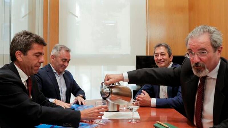 De momento, una de cal y otra de arena en las autonomías. Principio de acuerdo cerrado en Valencia y riesgo de ruptura en la Región de Murcia, donde la postura del PP de querer gobernar en solitario -está a 2 concejales de la mayoría absoluta- ha tensado las negociaciones entre el 'popular' Fernando López Miras y José Ángel Antelo.