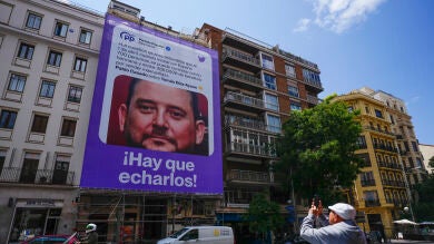 El PP de Madrid denuncia a Podemos ante la Junta Electoral y exige retirar la lona con la foto del hermano de Ayuso