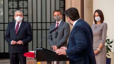 Los 3 diputados de Ciudadanos que no apoyaron la moción de censura en Murcia han tomado hoy posesión de sus nuevos cargos como consejeros del Gobierno de la Región. En el acto ha estado presente Fernando López Miras, que ha conseguido salvar su Gobierno. Desde el PP dicen que con este movimiento la moción ya no puede prosperar.