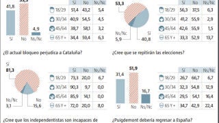 Un 53,3% de los catalanes se muestran en contra de la independencia y un 51,9% no quiere que se repitan elecciones en Cataluña