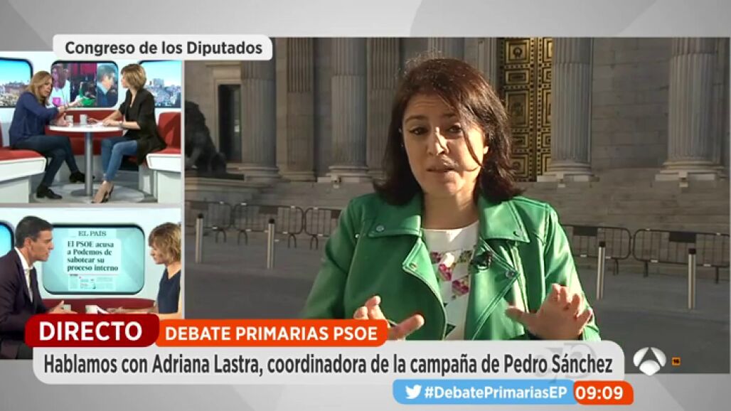 Adriana Lastra, coordinadora de la campaña de Pedro Sánchez ha aseverado que "el domingo se va a demostrar que este partido está muy vivo, que evidentemente hay una confrontación ideológica de proyectos estratégicos al futuro del PSOE y serán los militantes los que decidan. A partir de ahí, todos a cerrar filas en torno al secretario general del PSOE y a remar en la misma dirección".