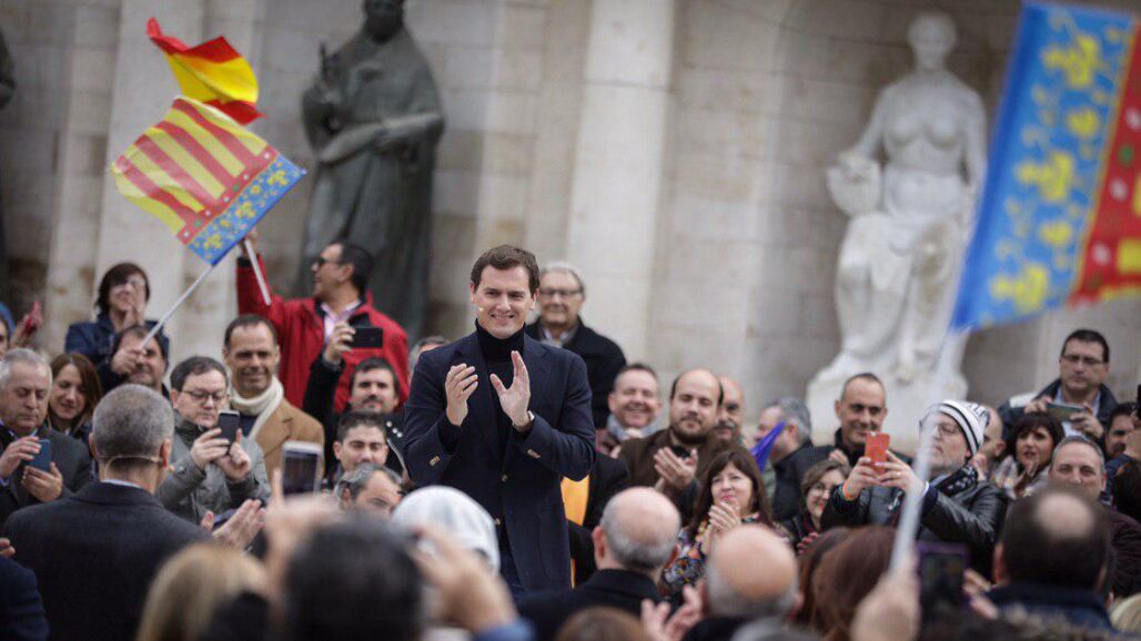 En un acto organizado por la plataforma España Ciudadana en Valencia, Rivera ha pedido paciencia con Sánchez por no convocar elecciones y le ha acusado de tener "unas tijeras gigantes" con las que "corta puentes" para volver a la España "de los rojos y los azules".