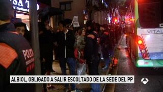 Albiol, obligado a salir escoltado de la sede del PP tras sufrir un escrache de un grupo de independentistas