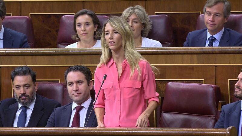 La portavoz del Partido Popular en el Congreso le ha reprochado a Calvo que únicamente se ha reunido en diez ocasiones para negociar y que "al final el progresismo iba a ser eso, la más descarnada y cínica lucha para liquidar a su socio socialista con el dinero de todos los españoles".