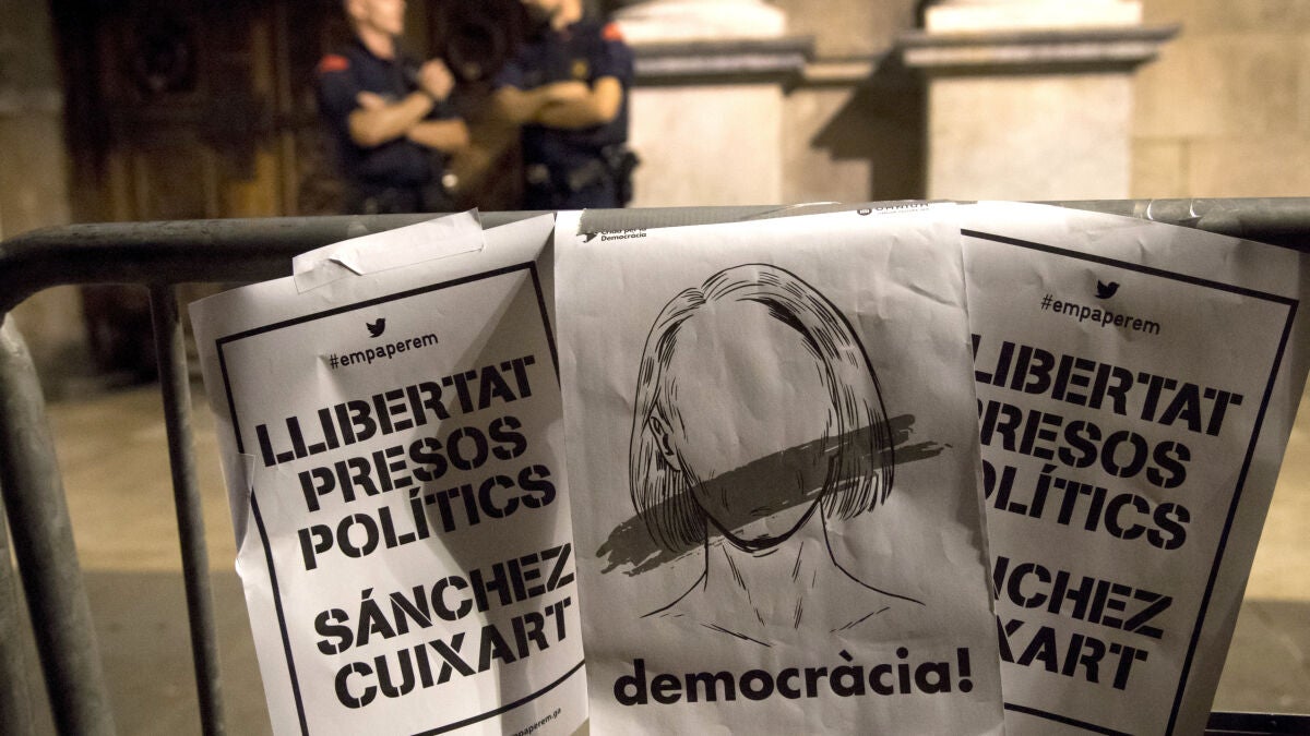 Esta concentración en Barcelona "para reclamar la libertad de los presos políticos", en referencia a Jordi Sánchez y Jordi Cuixart, ha sustituido una inicial convocatoria de protesta silenciosa ante las delegaciones del Gobierno.