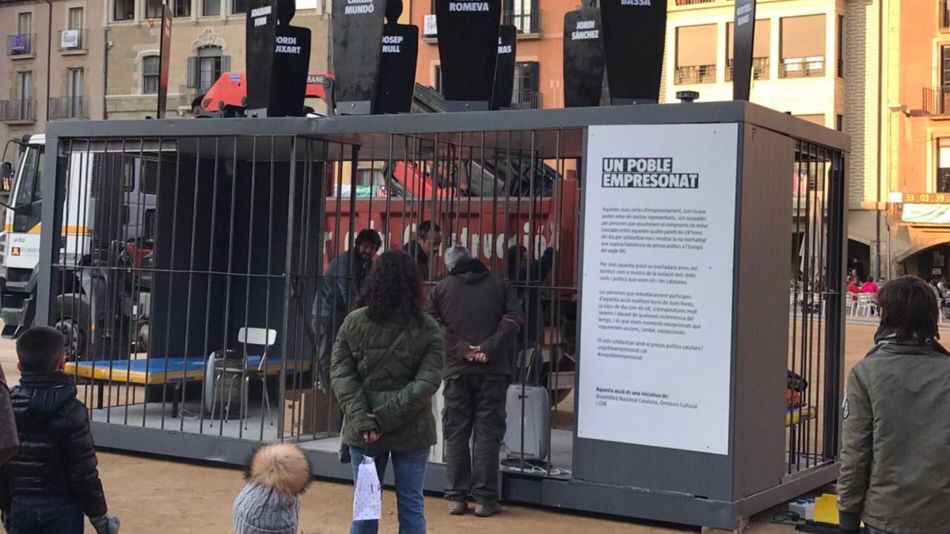 La cárcel es un contenedor rodeado de barrotes que dispone de dos celdas. Allí cada voluntario podrá permanecer durante dos horas, aunque las celdas tendrán que estar ocupadas las 24 horas para "poner de manifiesto la no normalidad que supone la existencia de presos políticos en la Europa del siglo XXI".