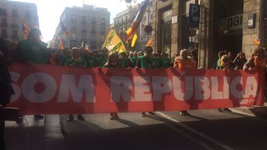 En un comunicado titulado 'La voluntad popular no se desconvoca', la entidad soberanista ha informado de que mantiene la convocatoria de la manifestación que ha comenzado a las 14.30 horas en la plaza Sant Jaume y avanzará hasta los aledaños del Parlament, donde la entidad había planeado instalar una pantalla gigante para seguir el pleno en directo.