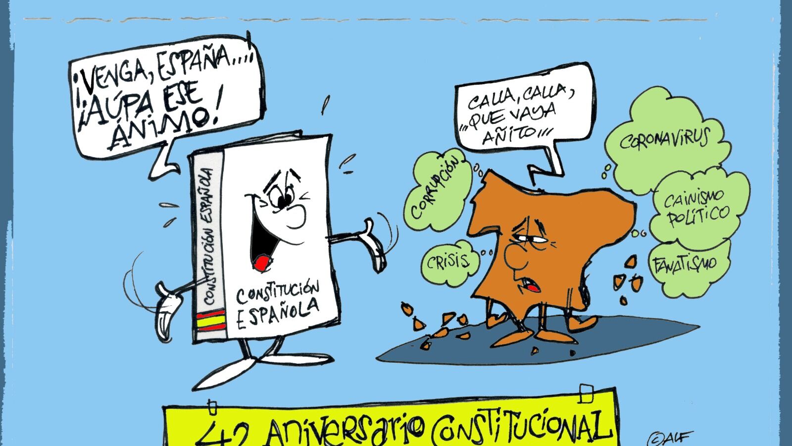 Este domingo 6 de diciembre se celebra el 42º aniversario de la Constitución española de 1978. Sin embargo, debido a la pandemia los actos de celebración se han reducido para evitar posibles contagios antes de la llegada de las Navidades. Así lo ve nuestro ilustrador Alfredo Boto-Hervás.