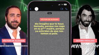También se ha tenido acceso a unos audios que intercambiaron el 31 de agosto de 2020 Javier Hidalgo, exCEO de Globalia, y Víctor de Aldama. Hidalgo está nervioso porque parece que le dan largas para el rescate de Air Europa y Aldama muestra su enfado e incluso dice que ha amenazado a Koldo. "He hablado con Koldo y me ha dicho que el miércoles nos vemos con el ministro. Me ha dicho que mañana hablamos y que estés tranquilo", manda Hidalgo, a lo que Aldama responde: "Creo que te ha llamado porque yo le he llamado y me he cagado en su puta madre porque ya está bien de que nos tomen el pelo".