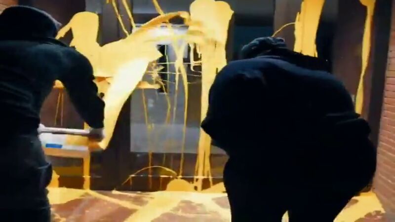 En el vídeo, la organización juvenil revela la dirección de Llarena y muestra como dos encapuchados lanzan pintura amarilla a las puertas del domicilio en Sant Cugat.