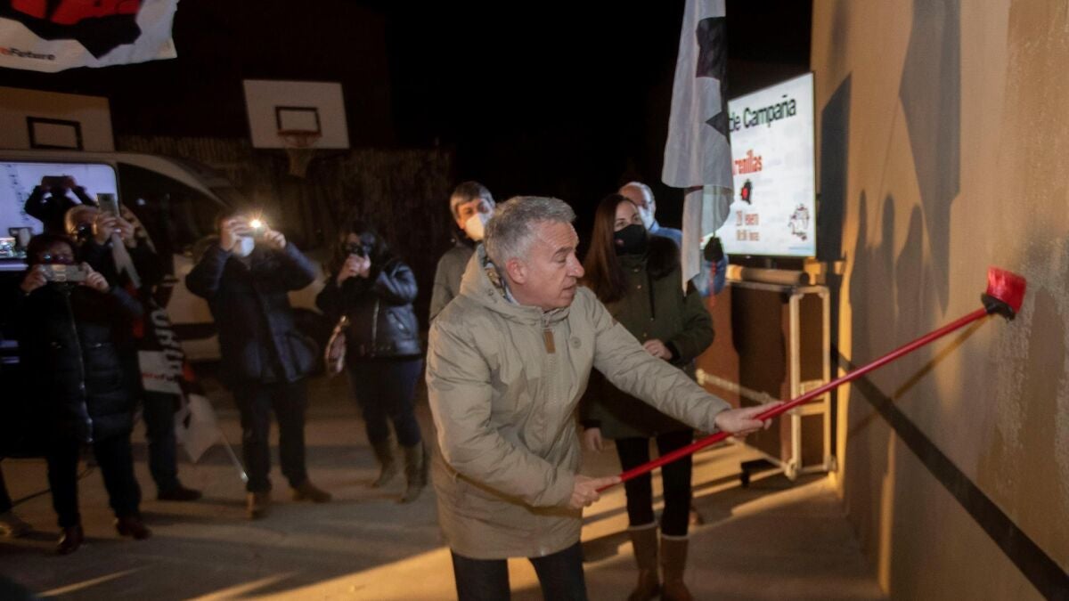 A las 12 en punto de la noche, el candidato del partido popular Alfonso Fernández Mañueco participaba en esa simbólica pegada de carteles en el centro de Valladolid y daba así comienzo a una campaña electoral que se juega en clave nacional.