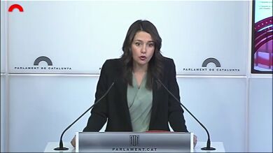 La líder de Ciudadanos en Cataluña critica que el Govern mantenga en la fachada de la Generalitat la pancarta a favor de la liberación de los presos soberanistas: "No nos podemos dar por invitados por Torra a un lugar que excluye a millones de catalanes", asegura.