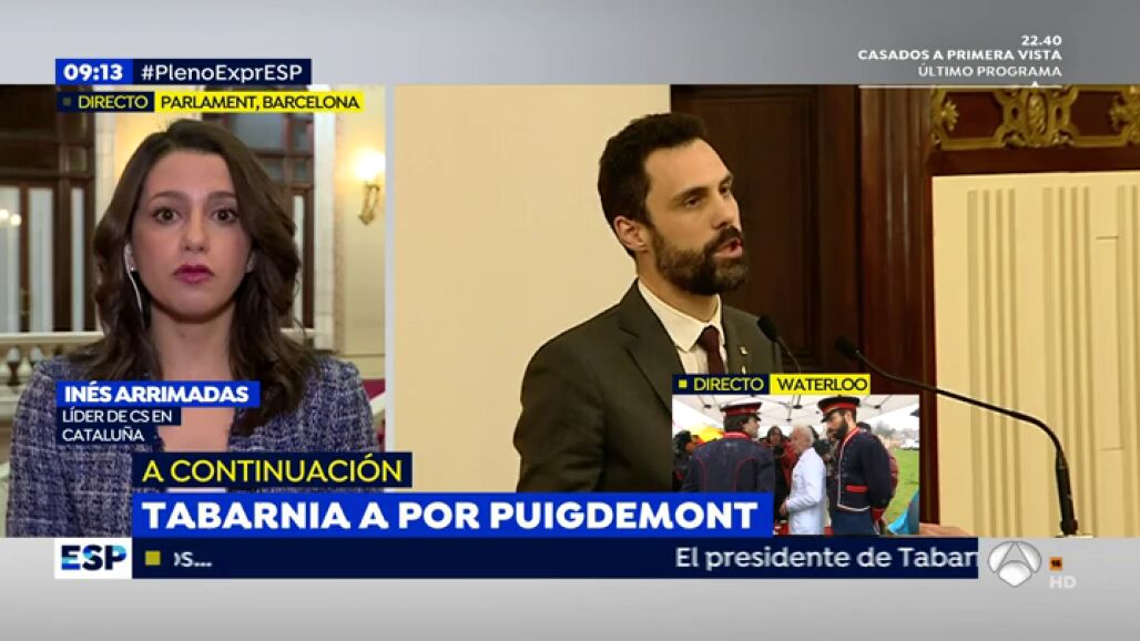 La líder de la oposición en Cataluña ha reprochado que "hace tres meses que tuvimos elecciones y ayer nos tiene que llamar corriendo para hacer un pleno hoy, para no tener un presidente, simplemente para tener lío". Arrimadas ha asegurado que "no han elegido a Jordi Turull porque quieran que sea presidente, lo han elegido porque saben que tiene lío que mañana puede ser inhabilitado y lo que quieren es eso, victimismo, follón y confrontación con el Gobierno de España".