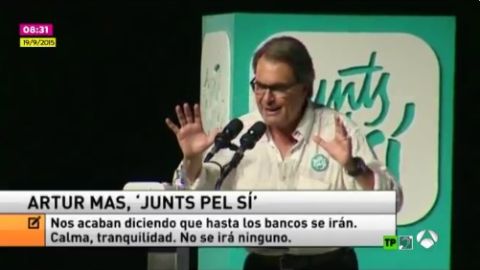 El entonces presidente de la Generalitat aseguraba ante los seguidores de Junts pel Sí que los bancos no se irían, y pedía "calma y tranquilidad".