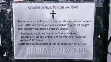 Estaba previsto que el oficio tuviera lugar a las 11.00 horas de este sábado en recuerdo "de todos los niños abortados durante el año 2019", petición extendida a todas las mujeres "en peligro de exclusión y con pensamientos de abortar", y, según los miembros de Vox en Gelves, sin polémica porque solo iban "a rezar".