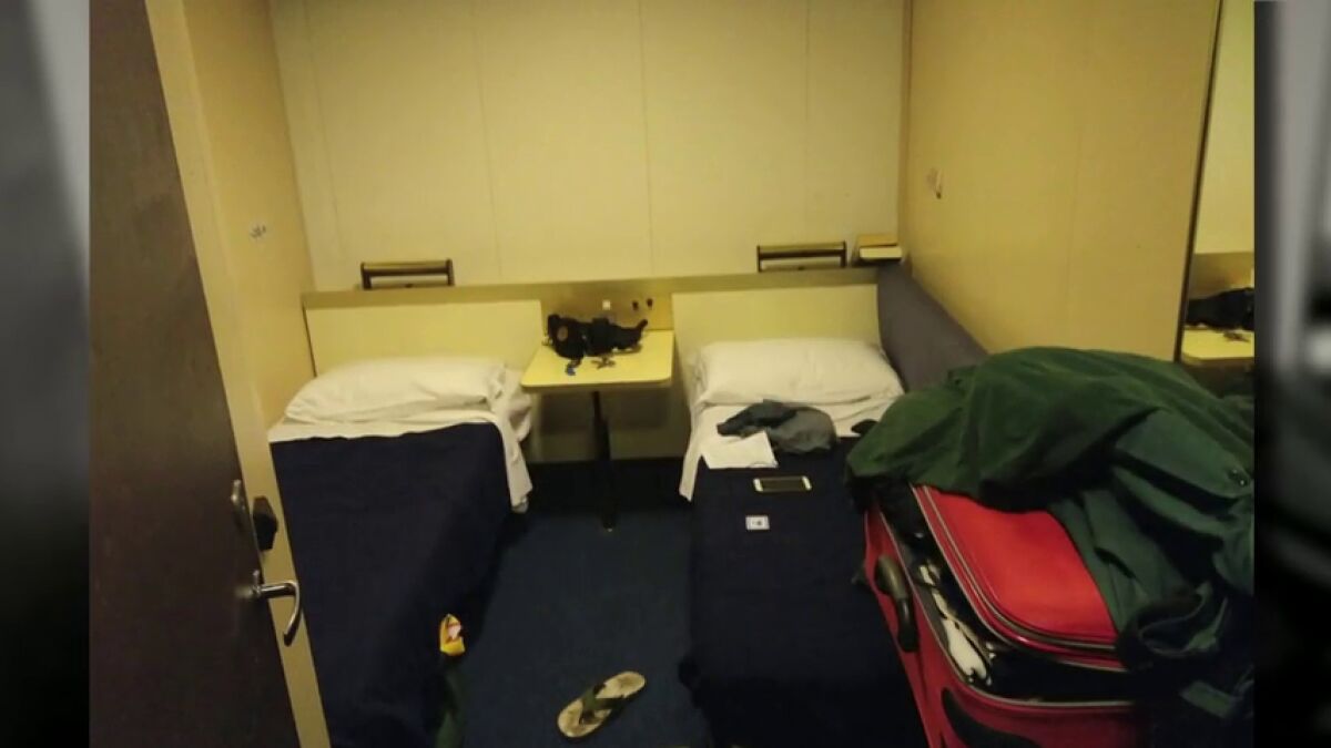 Casi treinta días después, la cosa no va a mejor, según ha podido comprobar en Antena 3 Noticias. Los pasillos de la naviera, que dan acceso a los camarotes, se encuentran en penosas condiciones, con las barandillas llenas de ropa y toallas.