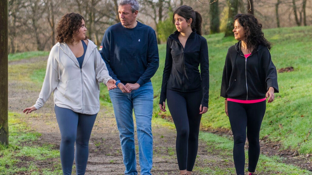 Antes, a primera hora de la mañana, el actual presidente de la Xunta y candidato del PP, Alfonso Rueda, ha salido a pasear con su mujer y sus hijas por el Monte Pedroso de Santiago de Compostela.