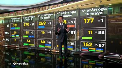 El pasado miércoles, por primera vez, la prórroga estuvo a punto de ser rechazada. PP se unió al no y también Compromís. Para mantener la prórroga el Gobierno negoció incluso aspectos que nada tienen que ver con la crisis sanitaria. Bildu se quedó en la abstención a cambio de la derogación de la reforma laboral. El Gobierno superaba la votación con 177 votos, uno más que los necesarios para la mayoría. En cinco votaciones ha perdido 144 apoyos y tiene difícil superar una nueva prórroga.