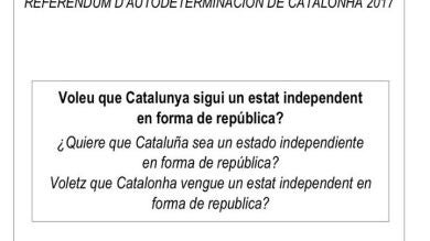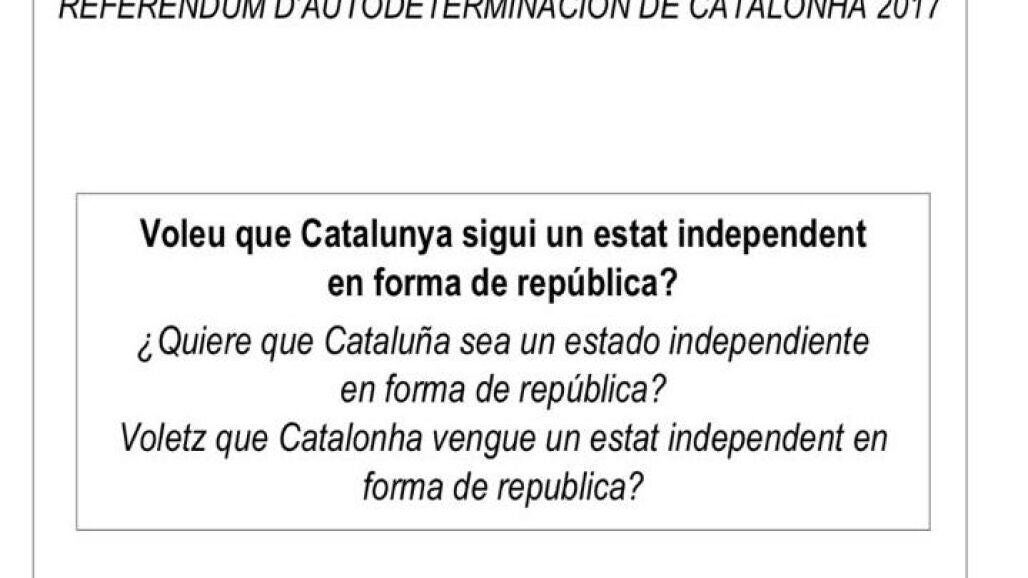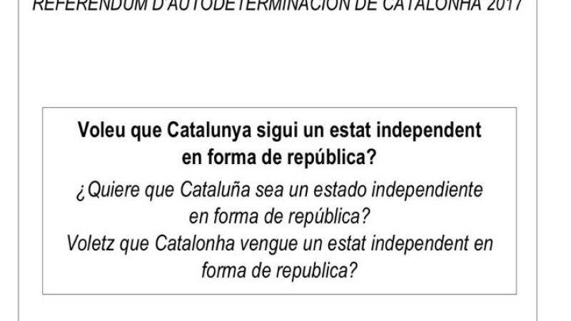 Así será la papeleta para votar en el referéndum del 1-O: "¿Quiere que Cataluña sea un Estado independiente en forma de república?"