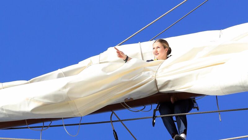 Aferrar las velas, mantener la cubierta, conocer la posición del barco. Así es la vida a bordo del Juan Sebastián de Elcano para la princesa de Asturias.