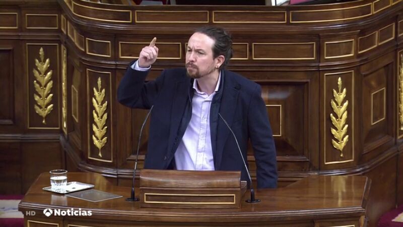 El ataque de Pablo Iglesias a los medios de comunicación desde la tribuna del parlamento