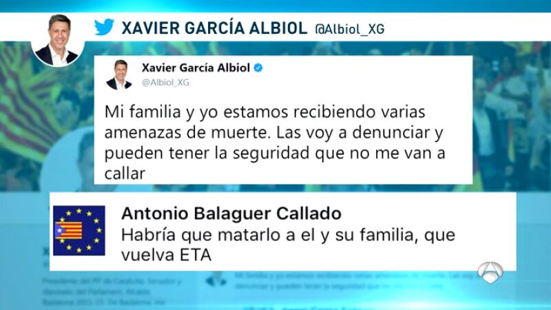 La semana pasada, García Albiol denunció haber recibido diferentes amenazas en Twitter contra él y su familia. En uno de los tuits se decía "habría que matarle a él y a su familia, que vuelva ETA". De la Mata tuvo conocimiento de estos mensajes y ha abierto una investigación.