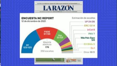 El Partido Popular (PP) perdería dos escaños en un mes, según la encuesta electoral publicada en 'La Razón', aunque podría seguir gobernando con el apoyo de Vox. La encuesta daría al PP entre 124 y 127 escaños y a Vox entre 49-51, por lo que juntos sumarían entre 174-178 escaños.