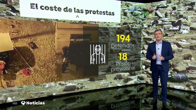 La cifra de detenidos es de 194, la mayoría han sido liberados, 70 han tenido que enfrentarse a la Justicia, que ha enviado a 18 radicales a prisión preventiva, acusados de desorden público, atentado a la autoridad y daños.