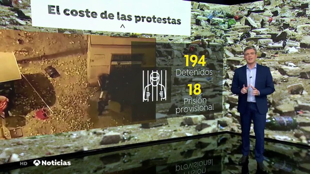 Además, la respuesta radical a la condena tiene un coste económico que solo en Barcelona supera ya los dos millones y medio de euros, según fuentes del Ayuntamiento, que ha perdido más de 1.000 contenedores de basura. A esta factura no han sumado aún otros gastos, como el coste del pavimento o las horas extras de funcionarios y trabajadores de limpieza.