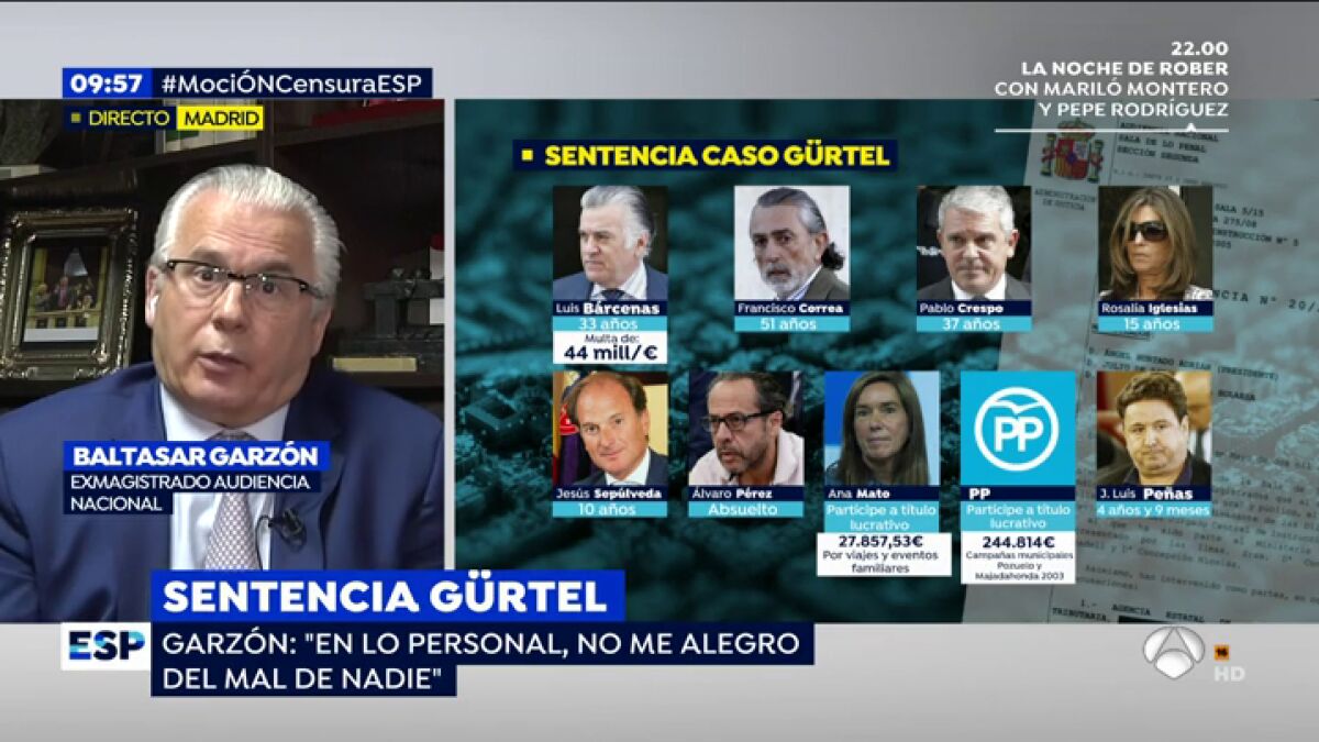El exmagistrado de la Audiencia NacionalBaltasar Garzón está de acuerdo con la sentencia del caso Gürtel porque, a pesar de ser muy compleja, "hay un examen muy minucioso a través de los hechos probados de lo que aconteció". "Creo que la sentencia responde a esa parte de investigación de más de un año que yo dirigí", subraya, y añade que "la sentencia en varias partes de la misma expresa que la actuación del instructor fue respetuosa con todas y cada una de las garantías y decisiones que tomó, incluidas las interceptaciones de las comunicaciones en prisión", por las que después fue condenado en el Tribunal Supremo.