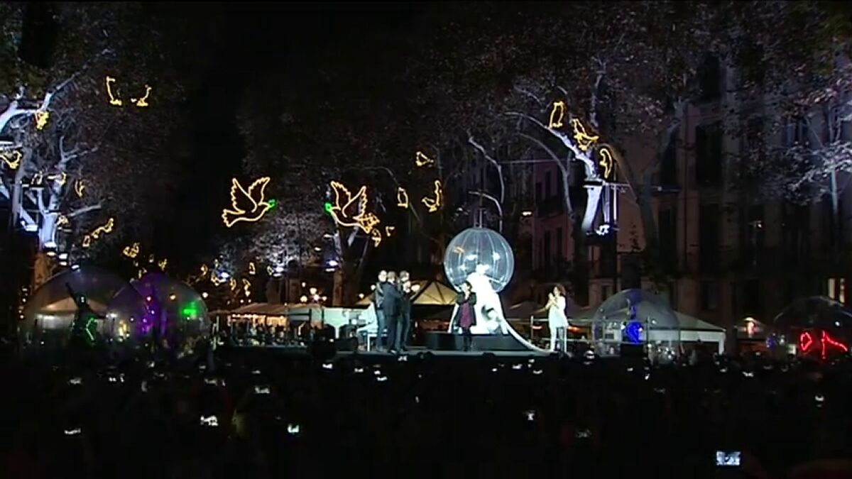 Barcelona ya luce alumbrado navideño tras un homenaje a las víctimas del atentado de las Ramblas