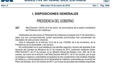 Este real decreto entra en vigor este mismo miércoles y está firmado por el presidente del Gobierno. La sesión constitutiva queda fijada para el 17 de enero a las 11.00 horas en el Palau del Parlament.