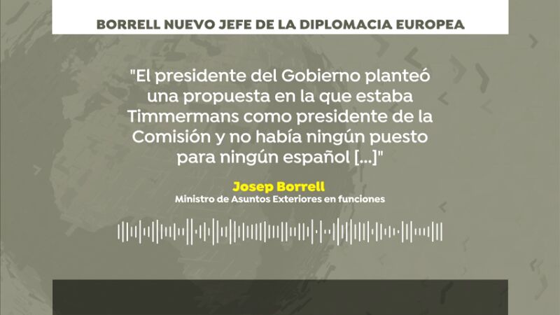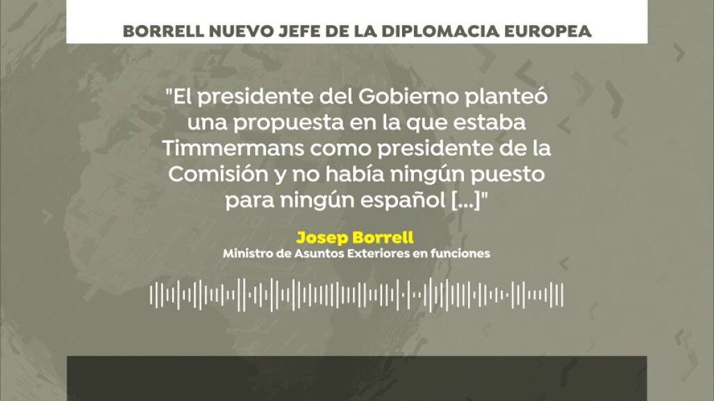 Josep Borrell se siente "muy honrado" al proponerle como alto representante de la UE para la Política Exterior. Lamenta que la propuesta del grupo socialista para presidir la Comisión Europea no saliese adelante.