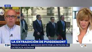 Gonzalo Boye, coordinador de las defensas internacionales de los políticos catalanes ha explicado que tres de los acompañantes de Carles Puigdemont cuando fue detenido en Alemania se van a presentar en la Audiencia Nacional, donde este lunes les toman declaración. Dice que les ha transmitido tranquilidad porque, afirma, "los hechos no encajan en la figura del encubrimiento". "Gracias a la reforma de 2013 del PP, la Audiencia Nacional y los tribunales no tienen jurisdicción sobre estos hechos", señala. Asimismo, recuerda que "los hechos han de ser constitutivos de delito en Alemania, y allí no se consideró constitutivo de delito, porque, de hecho, no fueron detenidos".